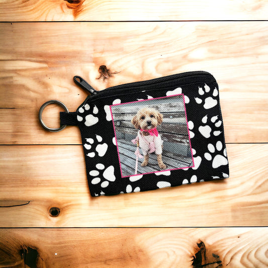 Personalized Dog Photo with Paw Prints Coin Purse - Custom Pet Picture Zipper Pouch