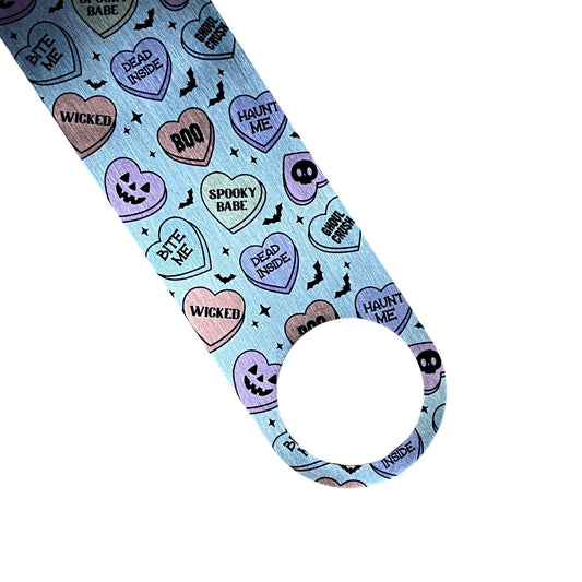 Cute Halloween Quote Hearts with Bats Stainless Steel Pub Style Bar Key