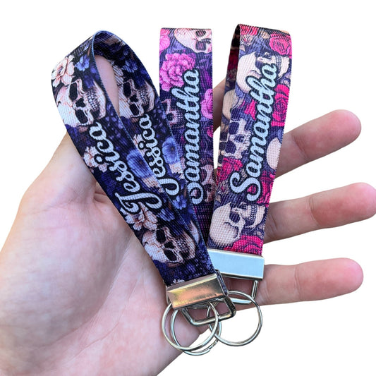 Vintage Skulls and Roses Design Custom Nylon Wristlet Key Fob – Personalized Floral Wristlet for Keys and Essentials