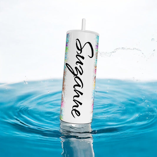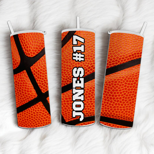 Custom Basketball Print Tumbler with Your Name and Number - 20oz Stainless Steel Tumbler with Lid and Straw