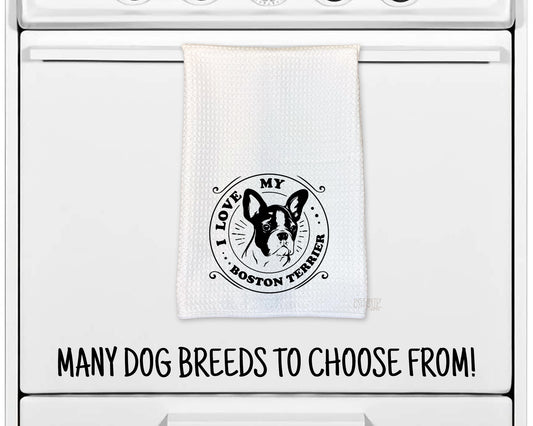 I Love My Dog Breed - Waffle Weave Kitchen Towel