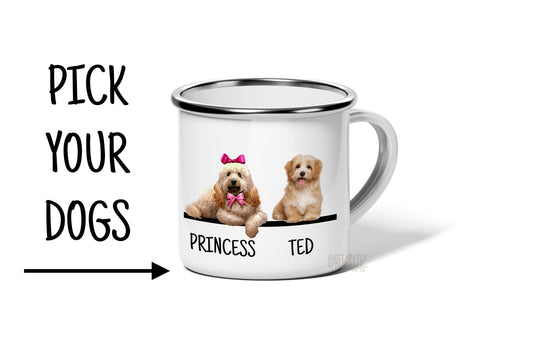 Pick Your Cute Dogs and Add Their Name - 12oz Enamel Mug