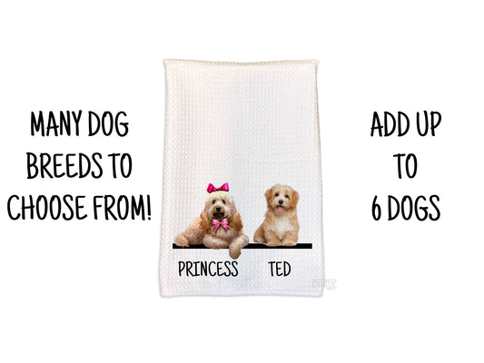 Pick Your Dog & Name Cute Dog Design Waffle Weave Kitchen Towel