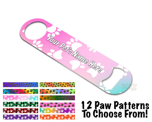 Personalized Pet Name Bar Key Paw Print Pattern Bottle Opener