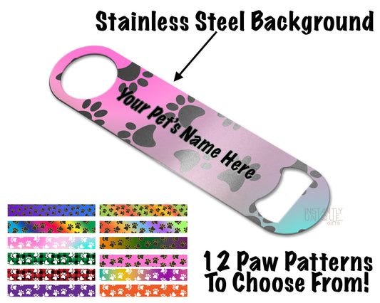 Personalized Pet Name Bar Key Paw Print Pattern Stainless Sheen Bottle Opener