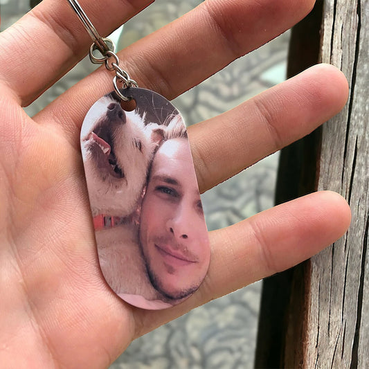 Custom Double-Sided Dog Photo Dog Tag Keychain - Personalized Pet Memory Keepsake