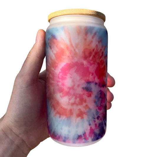 Tie Dye 16oz Frosted Glass Can with Bamboo Lid and Straw