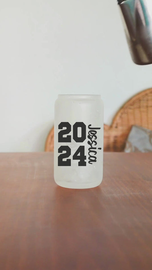 Personalized Graduation Glass Can - Custom Class of 2024 16 oz Frosted Cup - Customized Graduation Gift Tumbler with Bamboo Lid, Plastic Straw
