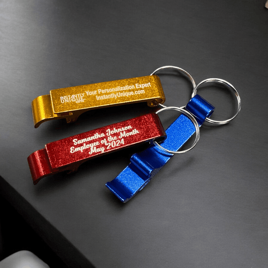 Custom Engraved Logo/Name Mixed Colored Aluminum Bottle Opener Keychains – Bulk Packs of 50, 100 & More