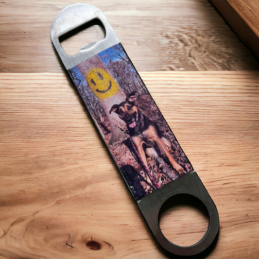 Personalized Photo Leather & Stainless Steel Bottle Opener Bar Key