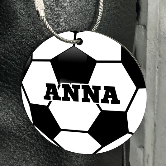 Personalized Soccer Ball Bag Tag - Custom Athletic Font with Player Name or Number - ID for Gear, Luggage, and Backpacks
