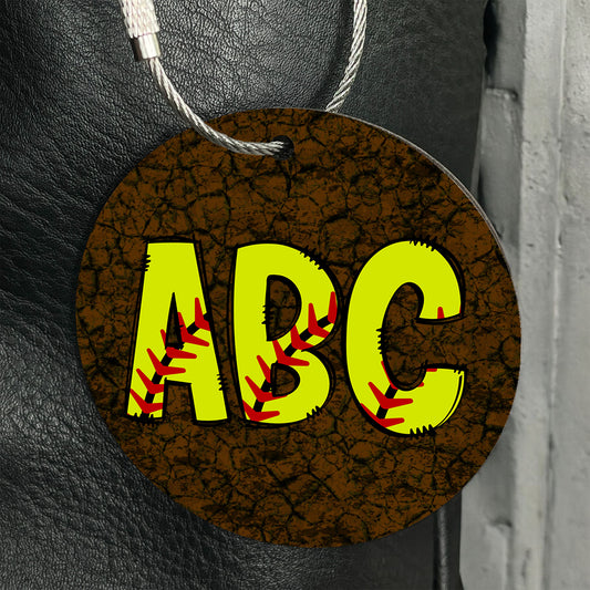Personalized Softball Sports Bag Tag with Vibrant Doodle Design - Custom Monogram Letter for Gear, Luggage, and Backpacks