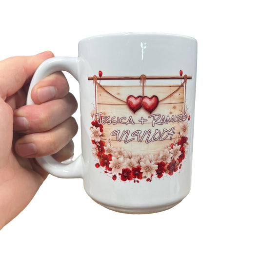 Customized 15oz Coffee Mug with Romantic Tree Carving-Inspired Wood Sign Design for Valentine's Day - Choose from 15 Unique Sign Designs