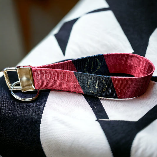 Black American Heritage Flag Personalized Name Nylon Key Fob - Custom Wristlet Keychain
