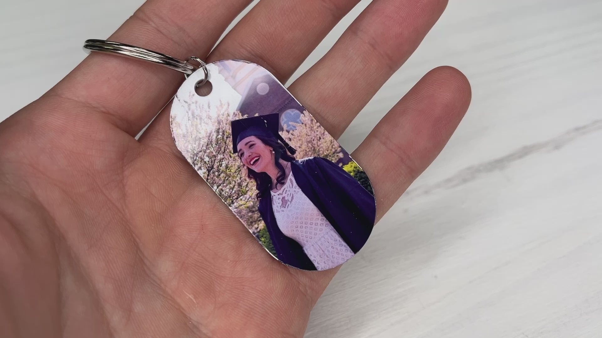 Product Details: Celebrate the monumental achievement of graduation with our Personalized 2024 Senior Graduation Photo Dog Tag Keychain. Expertly crafted to commemorate this special milestone, each keychain is personalized to feature the graduate's photo on one side and a distinguished 2024 Senior Graphic on the other, perfectly encapsulating the spirit of the occasion.